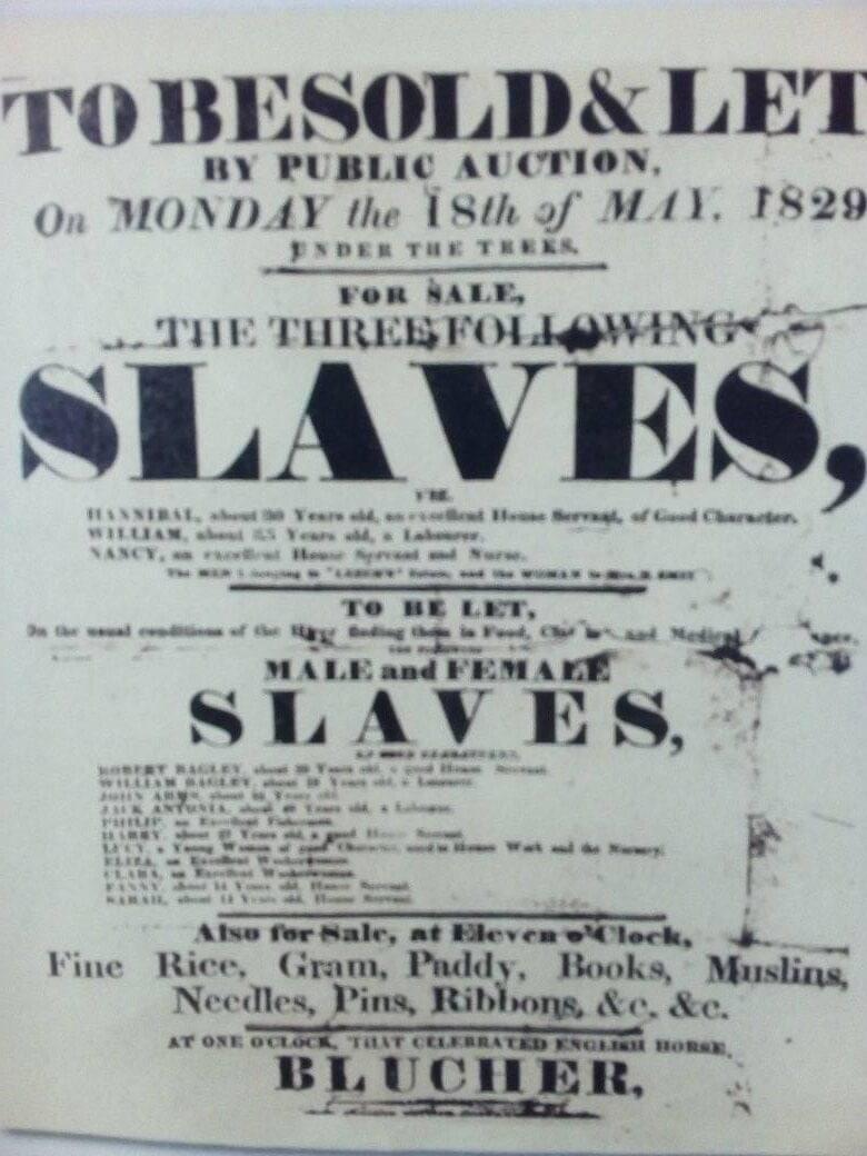 Αφίσα εποχής με την ανακοίνωση της δημοπρασίας για την πώληση δούλων
