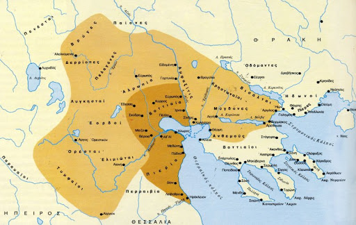 Στα χρόνια του Αλέξανδρου Α’ το βασίλειο της Μακεδονίας είχε απλωθεί προς τα ανατολικά και τα νότια. Σε αυτό περιλαμβάνονταν οι εξής περιοχές: Κρηστωνία: Οι παλαιοί κάτοικοι της, Κρήστωνες, είχαν εγκατασταθεί στην Χαλκιδική, γύρω από την Όλυνθο, και στη χερσόνησο του Άθω (τότε Ακτή). Απλωνόταν βορειοανατολικά στη Μυγδονία και είχε κύρια πόλη την Κρήστωνα.