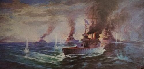 Ήταν σαφές ότι οι Τούρκοι είχαν την λανθασμένη εντύπωση ότι το «Αβέρωφ είχε απομακρυνθεί» από τη βάση του για να καταδιώξει το «Hamidieh» και σκόπευαν να προσβάλλουν το Μούδρο, αλλά μετά την εμφάνιση του αδιαίρετου ελληνικού στόλου επέστρεψαν στα Δαρδανέλλια. Ο ελληνικός στόλος με τα θωρηκτά σε μια γραμμή και σε μια άλλη πιο δεξιά τις ελαφρές μονάδες, έλαβε και αυτός πορεία προς τα νότια, συγκλίνοντας ελαφρά προς την εχθρική γραμμή.