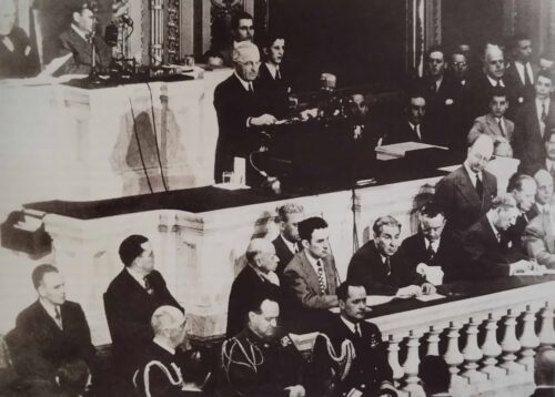 Για να περάσει οποιαδήποτε νομοθεσία ο Τρούμαν χρειαζόταν την υποστήριξη των Ρεπουμπλικάνων, που έλεγχαν και τους δύο θαλάμους του Κογκρέσου. Ο εκπρόσωπος των Ρεπουμπλικάνων, Γερουσιαστής Arthur H. Vandenberg υποστήριξε σθεναρά την πρόταση του Τρούμαν, με αποτέλεσμα να ξεπεραστούν οι αμφιβολίες των απομονωτιστών όπως του Γερουσιαστή Robert A. Taft.