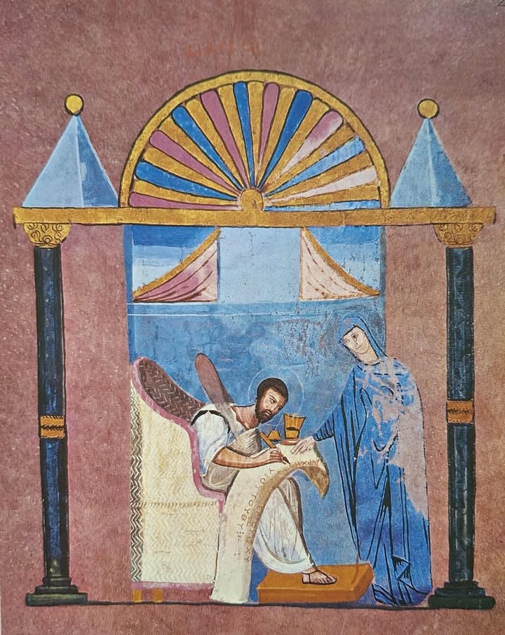 Όταν τα τέσσερα Ευαγγέλια συνενώθηκαν σε ένα ενιαίο κώδικα προέκυψε η ανάγκη, σύμφωνα με προχριστιανική συνήθεια, να κοσμήσουν τα χειρόγραφα με προσωπογραφίες των συγγραφέων τους και να συμπληρωθούν με σύντομες βιογραφίες τους και με περίληψη των περιεχομένων του βιβλίου. Οι χριστιανοί ακολούθησαν τη συνήθεια αυτή τόσο πιστά, ώστε μετέβαλαν τις προσωπογραφίες Ελλήνων φιλοσόφων και τραγικών ποιητών σε προσωπογραφίες Ευαγγελιστών.