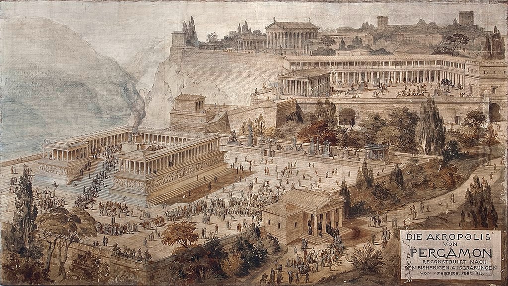 Ο μεγάλος βωμός της Αθηνάς και του Δία στο Πέργαμο (181-159π.Χ.) είναι το τελειότερο δείγμα τύπου βωμού που πρωτοφανερώθηκε στα αρχαϊκά χρόνια την Ιωνία και έδωσε λαμπρές μνημειακές δημιουργίες, όπως τον βωμό της Ήρας στη Σάμο και τον βωμό του Ποσειδώνα στο Μονοδένδρι της Μιλήτου.