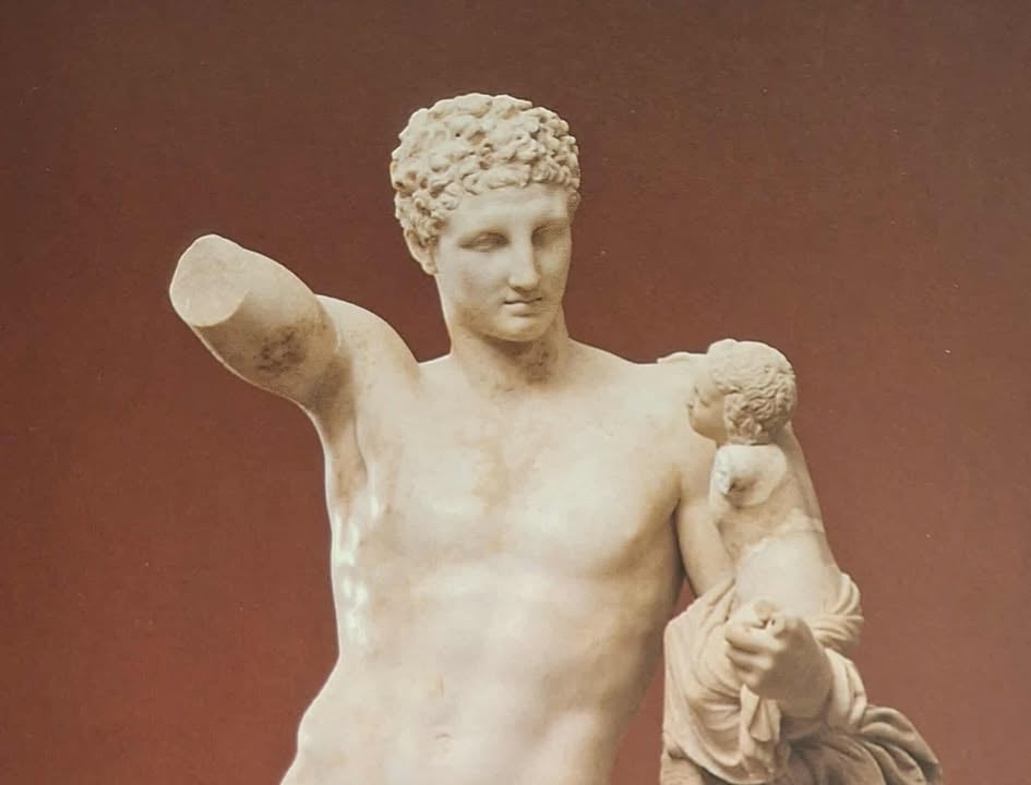 Ο Πραξιτέλης, γιος του Αθηναίου γλύπτη Κηφισόδοτου, ο οποίος έπλασε την Ειρήνη με τον Πλούτο, τοποθετούνταν από τους αρχαίους τεχνοκρίτες δίπλα στον Φειδία και τον Πολύκλειτο. Ο Ερμής της Ολυμπίας είναι το μόνο έργο που μας σώθηκε ενώ το χάλκινο παιδί που βρέθηκε στη θάλασσα του Μαραθώνα μπορεί να αποδοθεί στο εργαστήριό του. Τα ρωμαϊκά αντίγραφα των έργων του είναι πολυάριθμα.